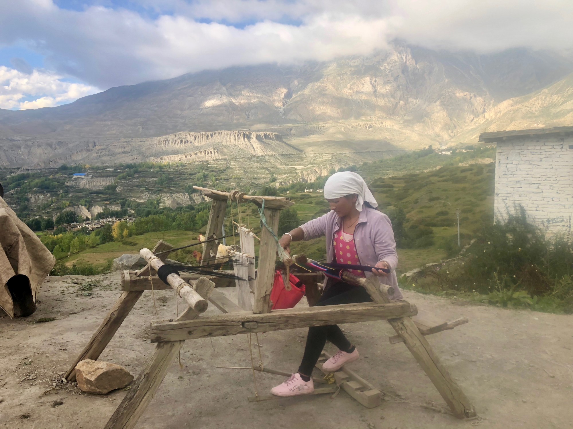 I bet you didn’t know that Superman really came from Nepal. This container, when filled, holds either 500 or 1000 liters of water.A typical ladderMake way for the yaks! (What else would you expect in a place named Yak Kharka?)Breakdowns are a fact of life on these roads. You’d better be prepared.This jumble shows many things to the inspecting eye: Stone houses leading to the monastery, badlands peaks, wood stacked on roof tops, ladders to help ascend the crazy steep slopes, prayer flags galore, clothing hanging out to dry, apple trees and of course ugly power lines. What else?A Nepali style billboardi was surprised to see this store set up halfway up the very steep (but not too long) trail to Ghyar. I spent a pleasant 10-15 minutes talking to the owner, although I didn’t buy anything.An altar (I presume) and other Buddhist items were featured in this hotel’s dining room.A group of porters. Porters tended to travel together in small groups.There was a decent amount of new construction along the way. This would seem to be an addition to the Moonlight Guest House. Or perhaps some competition? Power tools were seen in limited quantity.Girls walk down the street making some sort of public announcement.Construction (or reconstruction) projects were not uncommon in this area. Although some power tools are used, most of the work is manual labor.Kitchen and stove at the hotelThis is not a welcome sight to trekkers who want to keep their boots dry. But for locals wearing flip-flops it’s no big deal.A game attracts a crowdRoad construction crewRice grows in paddies on terraced fields in the lower elevationsLocals clear debris from a recent landslide. No big deal; it happens all the time.Pretty good advice everywhereThis man was curring something down from the top of the treeShare the trailThe “New Bridge” being used by over a dozen horses and half a dozen “cool as a cucumber” human drivers. (I’m sorry you can’t see the ends of the bridge; my camera’s wide angle lens was not wide enough. Oh yes, the bridge is twice as high above the river below as you can see from this vantage point.)