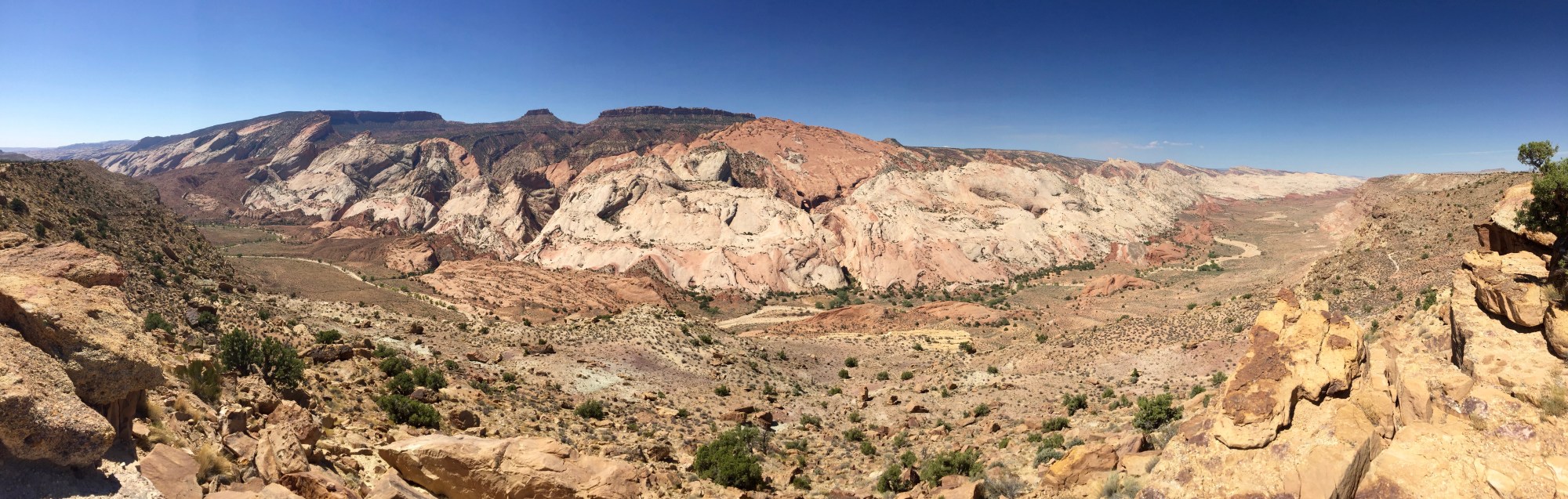 After some formalities, my visit started in earnest with a drive through a large part of the Waterpocket Fold to my trailhead.  This is a 100-mile long geological feature. While the pictures below will give you an idea of what it looks like on the inside, I never visited a place that would give me an overlook of it; for that, you can check out this Wikipedia page.  You might be surprised that there is a place on earth that looks like it.